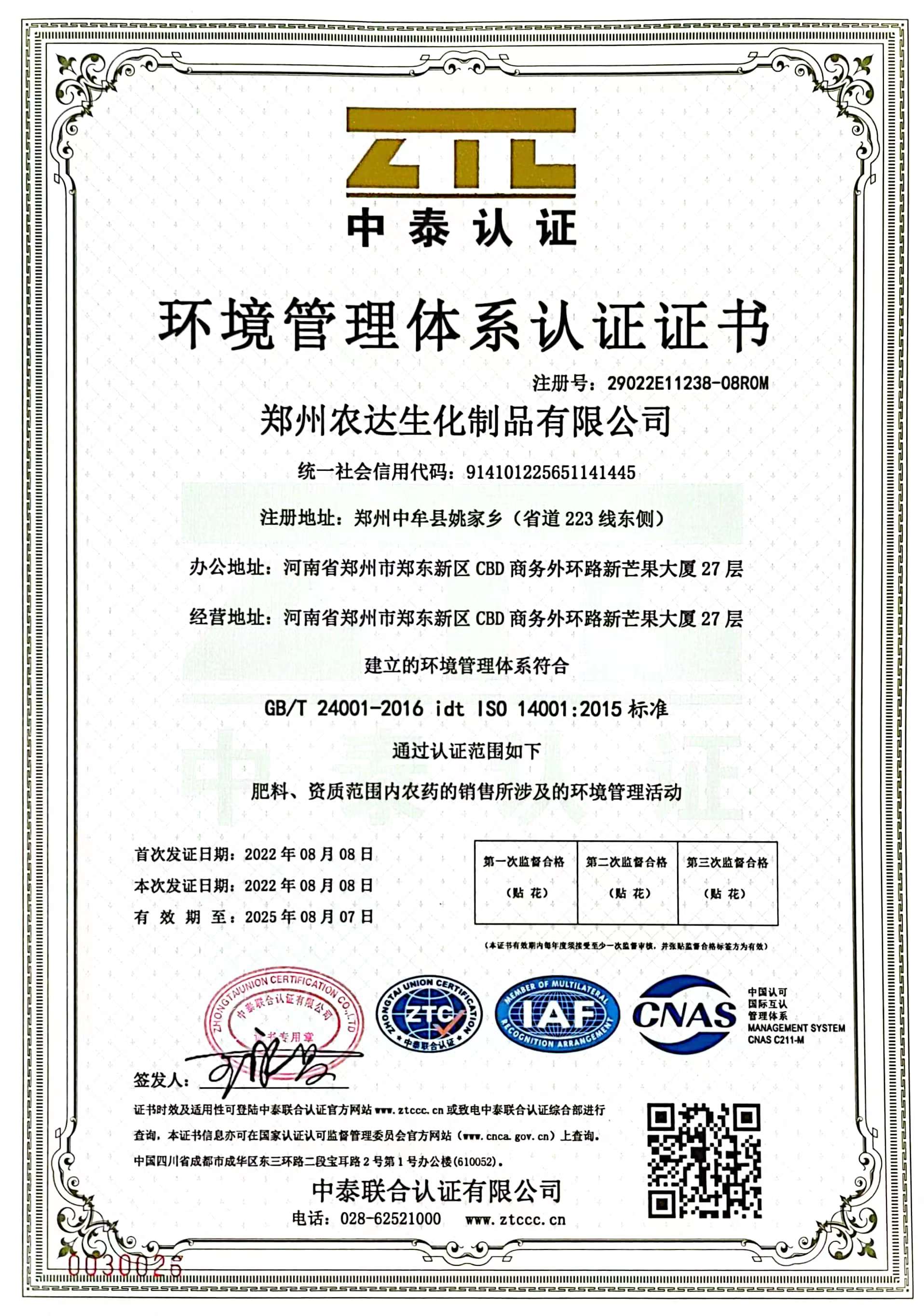 news center近期,经过一个月的审核、验收,农达生化顺利通过了iso质量、环境、职业健康安全三体系认证工作。
